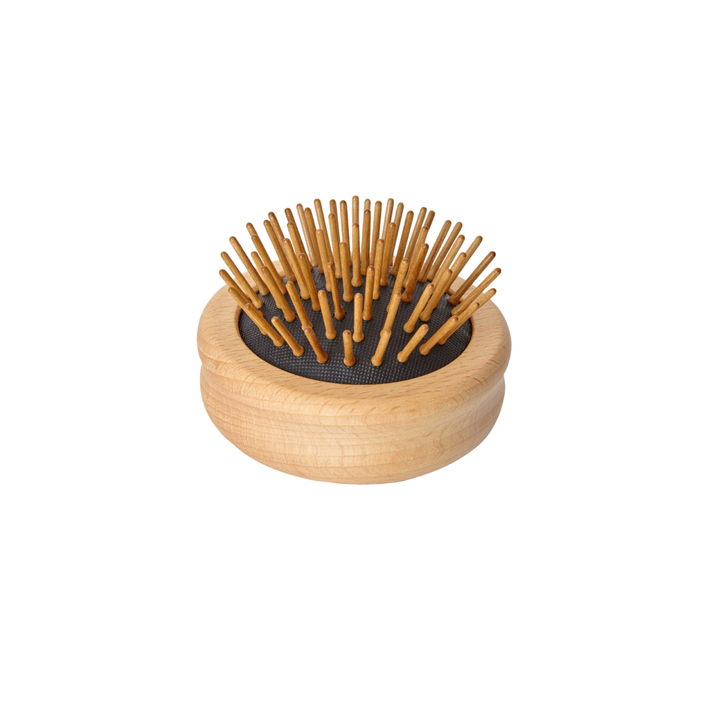 - Entdecke unsere NOELIE Taschenhaarbürste, die nicht nur stylish, sondern auch extrem funktional ist. Mit einem Durchmesser von nur 70 mm passt sie mühelos in jede Handtasche und ist somit der ideale Begleiter für unterwegs. Durch das innovative Design mit eindrückbaren Holzstiften lässt sich die Bürste sicher verstauen, ohne dass die Borsten beschädigt werden.